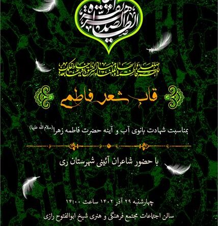 ری به مناسبت شهادت بانوی دوعالم حضرت فاطمه زهرا(س)، محفل ادبی « قاب شعر فاطمی »