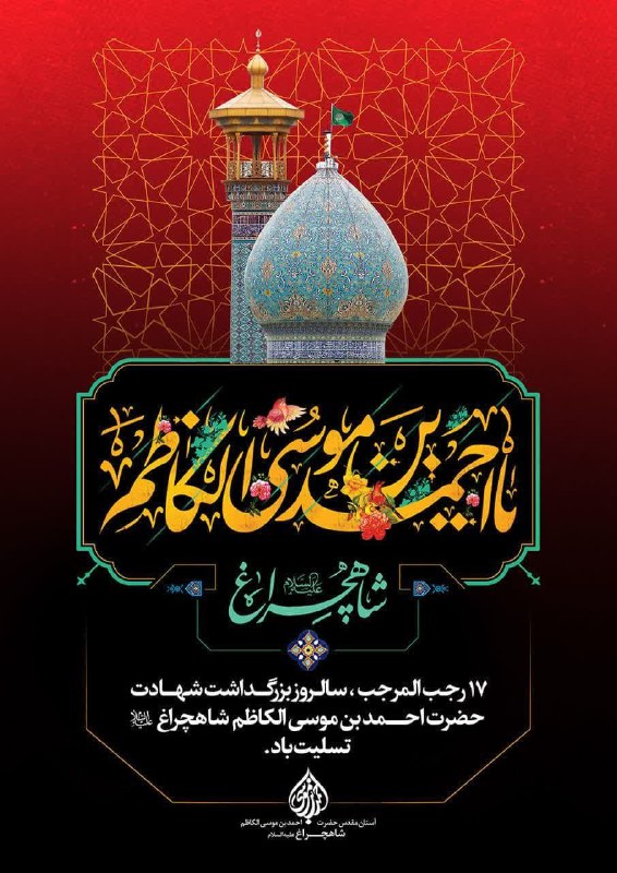 ۱۷ رجب سالروز گرامیداشت شهادت حضرت احمد بن موسی الکاظم شاهچراغ(ع) تسلیت باد.