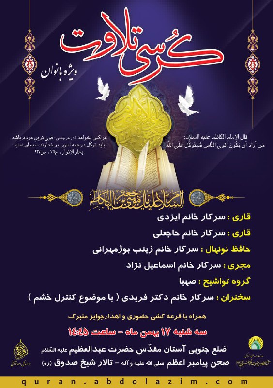 ویژه برنامه کرسی تلاوت قرآن کریم به مناسبت سالروز شهادت امام کاظم(ع)(ویژه بانوان)