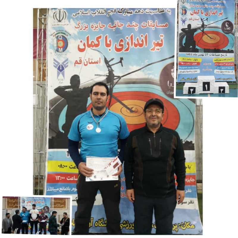 کسب مقام دوم محمدصادق کبودانی کماندار ارزنده شهرری در مسابقات کشوری جایزه بزرگ تیراندازی با کمان به میزبانی استان قم که به مناسبت دهه مبارک فجر در تاریخ ۱۴۰۲/۱۱/۲۷ برگزار شد شرکت نموده دراین مسابقات کبودانی رئیس هیات تیراندازی با کمان شهرستان ری نیز حضور داشتند.