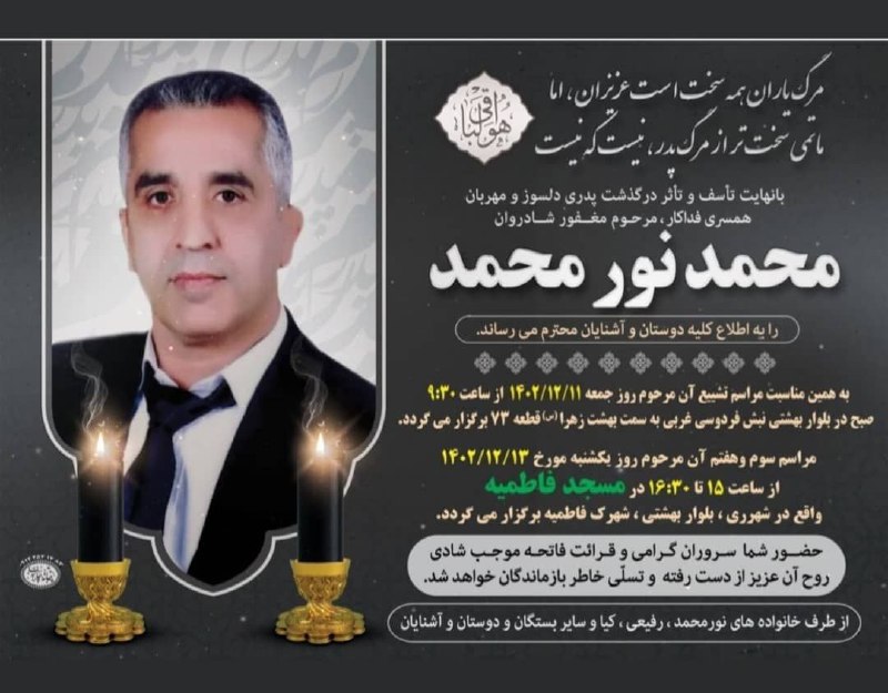 بدینوسیله این ضایعه اندوهناک را حضور جامعه ورزش و جوانان شهرستان ری و خانواده ایشان تسلیت عرض نموده و برای آن فقید سعید، رحمت و غفران الهی را آرزومندیم.