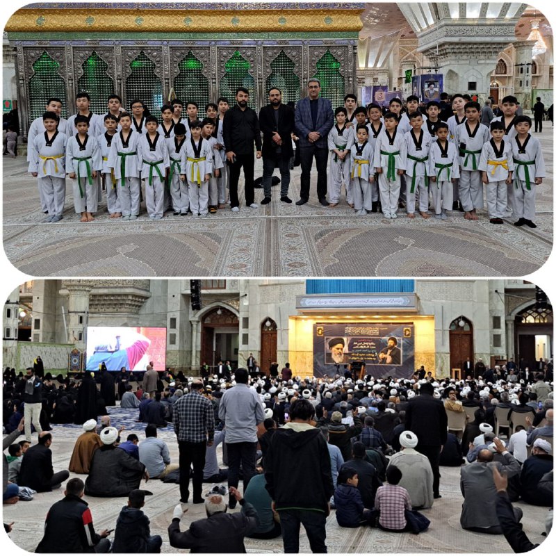 حضور آقابابائی مسئول اماکن ونظارت اداره و سرپرست اداره ورزش وجوانان باقرشهر ،پورنگ سرپرست اداره ورزش وجوانان کهریزک، شهبازی رئیس هیات تکواندو کهریزک و ورزشکاران در حرم مطهر حضرت امام خمینی( ره) بمناسبت بیست و نهمین سالگرد ارتحال حجتالاسلام والمسلمین حاج سید احمد خمینی (ره )و بزرگداشت حضرت آیتالله سید محمد بجنوردی (ره)