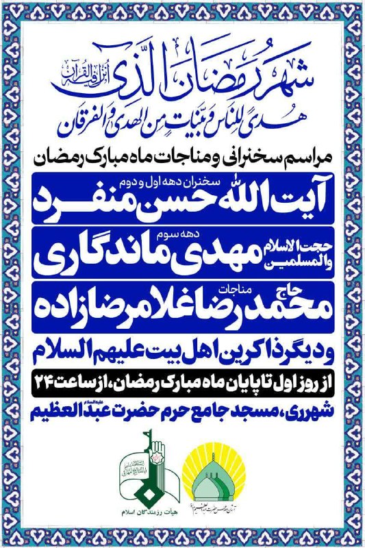 ویژه برنامه سخنرانی و مناجات خوانی ماه مبارک رمضان
