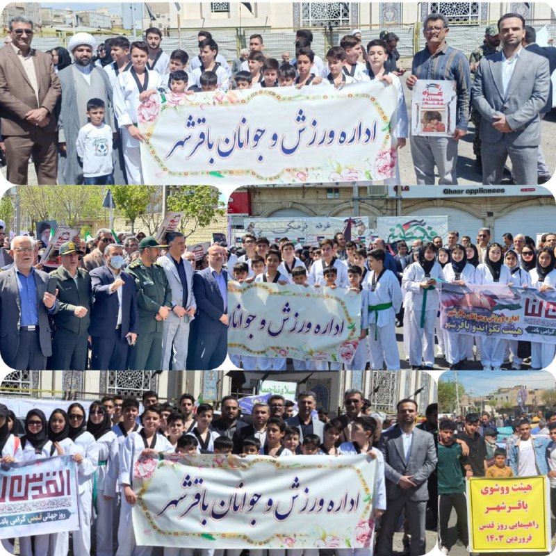 حضور رئیس اداره، مسئولین ، هیات های ورزشی، پيشكسوتان ، قهرمانان و ورزشکاران در راهپیمایی باشکوه روز جهانی قدس همراه با مردم ولایتمدار باقرشهر و کهریزک