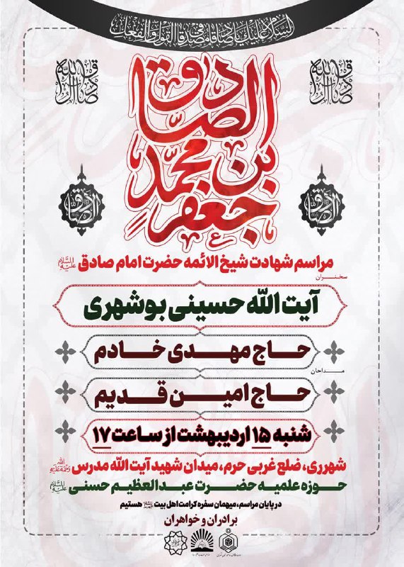 اخبار کوتاه حضرت عبدالعظیم شهری صبح قلعه نو: اردیبهشت 11, 1403 خبرنگار وبگاه صبح قلعه نو 0 دیدگاه ویژه برنامه سالروز شهادت شیخ الائمه حضرت امام جعفر صادق(ع) سخنران: آیت الله حسینی بوشهری مرثیه خوانی: حاج مهدی خادم حاج امین قدیم شنبه ۱۵ اردیبهشت ماه از ساعت ۱۷ در حوزه علمیه حضرت عبدالعظیم(ع) سایت | اینستاگرام | تلگرام | ایتا | روبیکا | سروشپلاس | بله | ایکس | آپارات | واتساپ