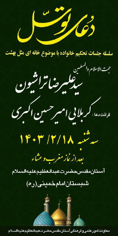 سلسله جلسات تحکیم خانواده با عنوان ” خانه ای مثل بهشت” و قرائت دعای توسل