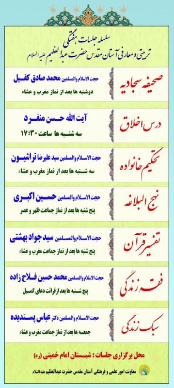 سلسله جلسات هفتگی تربیتی و معارفی آستان مقدس حضرت عبدالعظیم(ع)