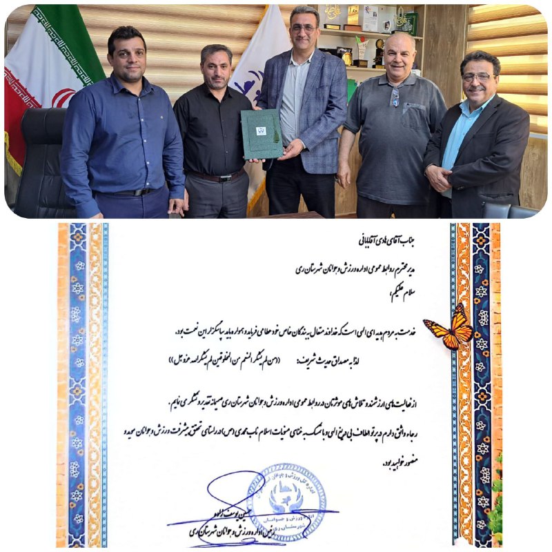 توسط یوسف زاده رئیس اداره، صمدی معاونت ورزش اداره و با حضور پیشکسوتان ورزش وبه مناسبت ۲۷ اردیبهشت ماه روز ارتباطات و روابط عمومی از تلاشها و زحمات هادی آقابابائی مدیر صبح قلعه نو تقدیر بعمل آمد.