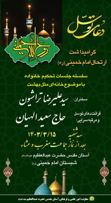 سلسله جلسات تحکیم خانواده با عنوان “خانه ای مثل بهشت” و قرائت دعای توسل