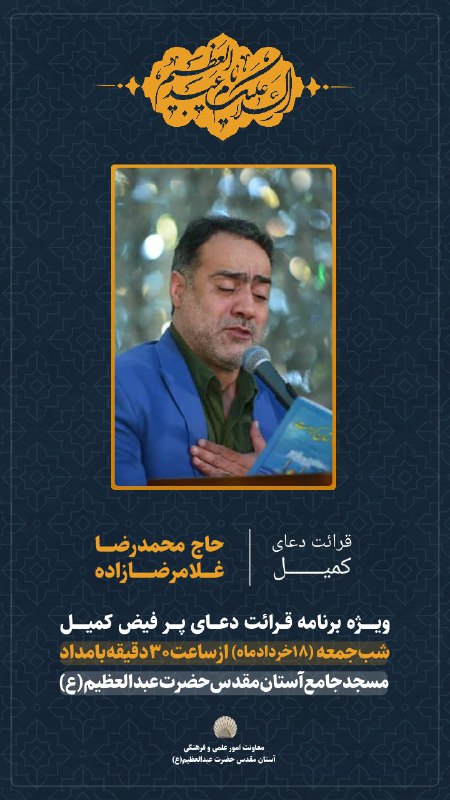 اخبار کوتاه حضرت عبدالعظیم شهری صبح قلعه نو: خرداد 16, 1403 خبرنگار وبگاه صبح قلعه نو 0 دیدگاه #اطلاع_رسانی مراسم قرائت دعای کمیل(نیمه شب) با نوای حاج محمدرضا غلامرضازاده شب جمعه (۱۸ خرداد) از ساعت ۳۰ دقیقه بامداد مسجد جامع آستان مقدس حضرت عبدالعظیم(ع) حرم حضرت عبدالعظیم(ع)