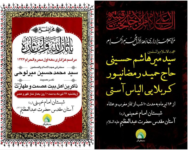ویژه برنامه عزاداری دهه اول محرم پس از نماز ظهر و عصر