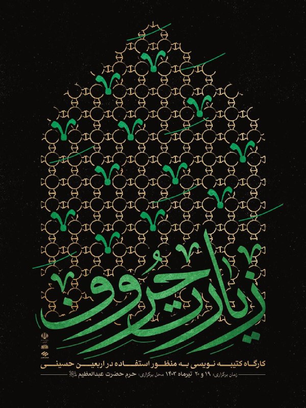 این کارگاه با عنوان “زیارت حروف” با حضور ۳۰ تن از هنرمندان خوشنویس در کربلای ایران اسلامی، بارگاه ملکوتی حضرت عبدالعظیم(ع) برگزار و فرازهایی از زیارت نورانی اربعین در قالب کتیبه هایی خطاطی شده و در مسیر راهپیمایی اربعین حسینی در کشور عراق نصب خواهد شد.