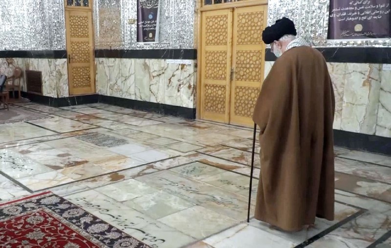 تصویری از رهبر معظم انقلاب درحال قرائت فاتحه بر مزار آیت‌الله حاج میرزا عبدالکریم حق‌شناس در جریان حضور در حرم مطهر حضرت عبدالعظیم حسنی(ع)