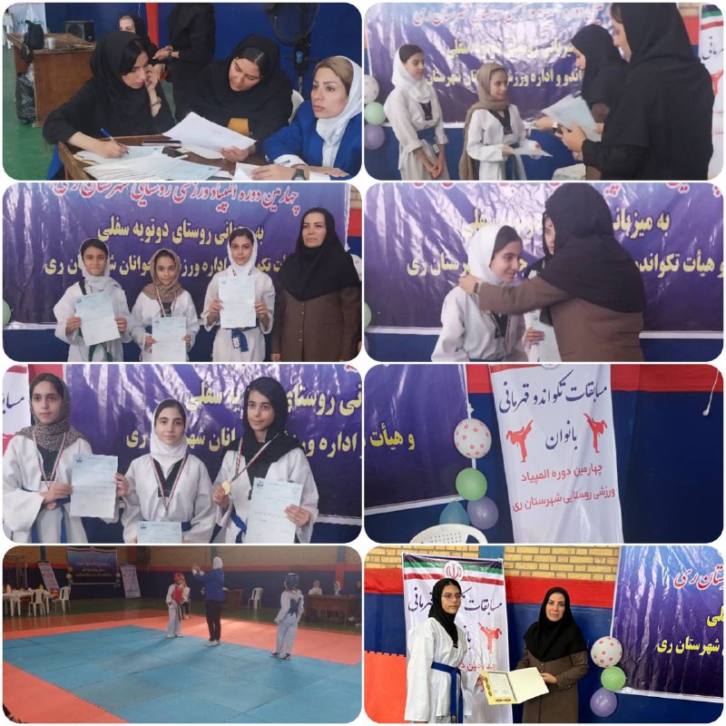 به گزارش صبح قلعه نو مسابقات تکواندو بانوان چهارمین دوره المپیاد ورزش روستایی شهرستان ری با حضور خانم شیری زاده دهیار دوتویه سفلی و خانم شیخی نایب رئیس هیات تکواندو به میزبانی روستای دوتویه سفلی برگزار و نتایج ذیل بدست آمد: