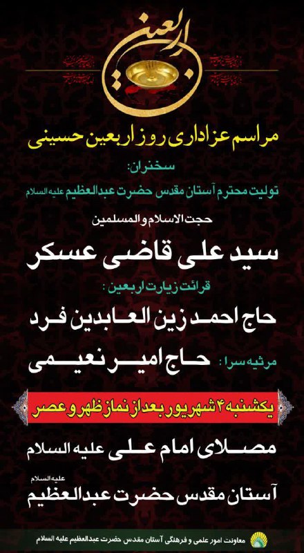 یکشنبه ۴ شهریور ماه بعد از نماز ظهر و عصر