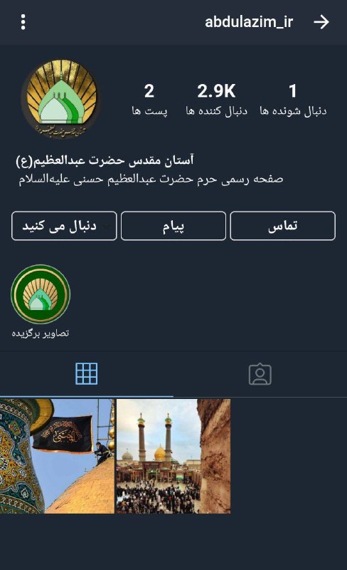 آغاز فعالیت صفحه رسمی آستان مقدس حضرت عبدالعظیم (ع) در روبینو