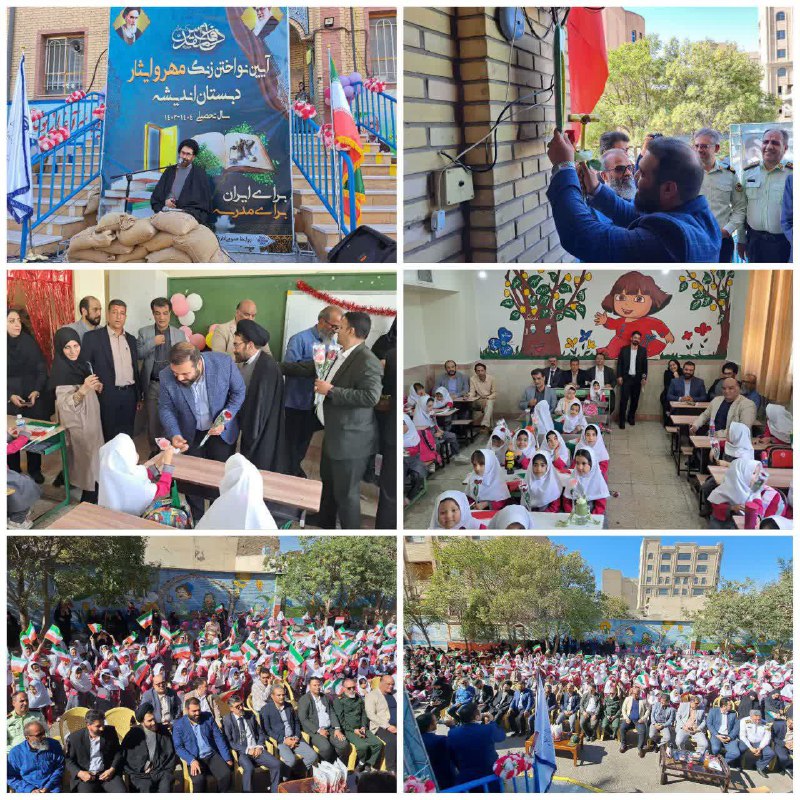 آیین بازگشایی مدارس در روستای بخش فشافویه باحضور حجت الاسلام والمسلمین امیری امام جمعه و هادی حسین خانی بخشدار فشافویه و سایر مسئولین در دبستان اندیشه حسن آباد