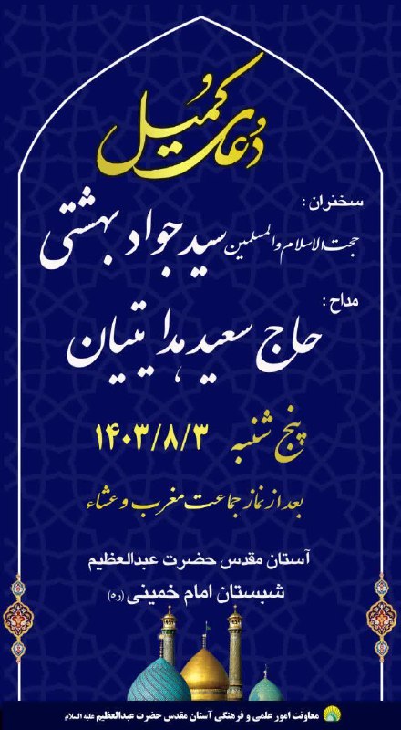 پنجشنبه ۳ آبان ماه بعد از نماز مغرب و عشاء