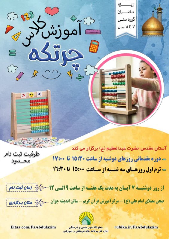 مکان ثبت نام: صحن مصلی _ مرکز آموزش قرآن کریم _ سالن اندیشه جوان