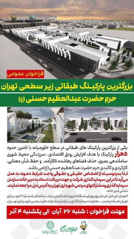 بزرگترین پارکینگ طبقاتی زیر سطحی تهران حرم حضرت عبدالعظیم حسنی(ع)