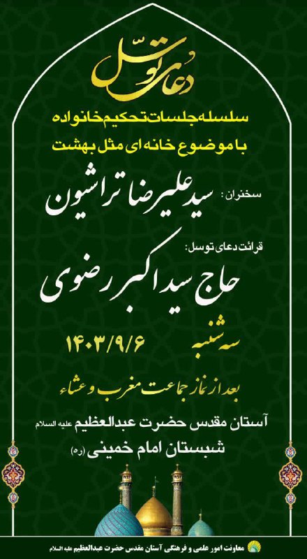 سلسله جلسات تحکیم خانواده با عنوان “خانه ای مثل بهشت” و قرائت دعای توسل