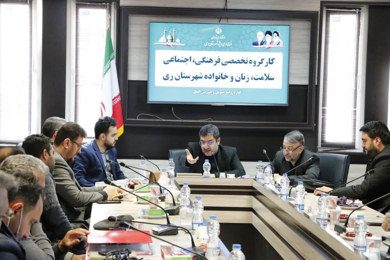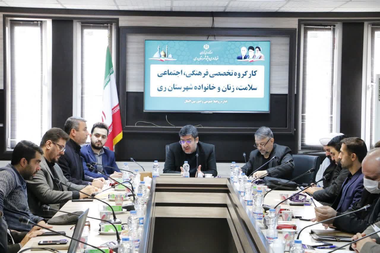 به روایت صبح قلعه نو، دهمین نشست کارگروه فرهنگی، اجتماعی، سلامت، زنان و خانواده شهرستان ری به ریاست مهدی باب الحوائجی معاون استاندار تهران و فرماندار ویژه شهرستان ری و باحضور رؤسای ادارات و کارشناسان مربوطه در محل سالن شهدای مدافع حرم ساختمان فرمانداری برگزار شد.