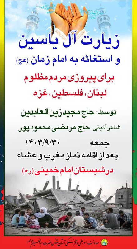 مراسم قرائت زیارت آل یاسین و استغاثه به امام زمان(عج) برای پیروزی مردم مظلوم لبنان و فلسطین