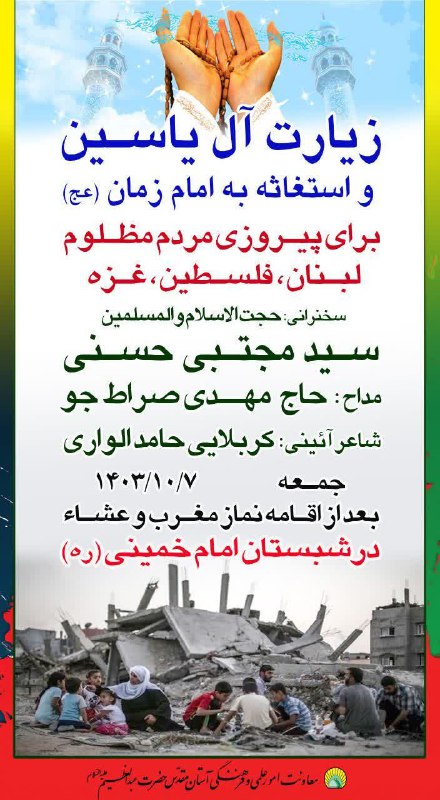 مراسم قرائت زیارت آل یاسین و استغاثه به امام زمان(عج) برای پیروزی مردم مظلوم لبنان و فلسطین