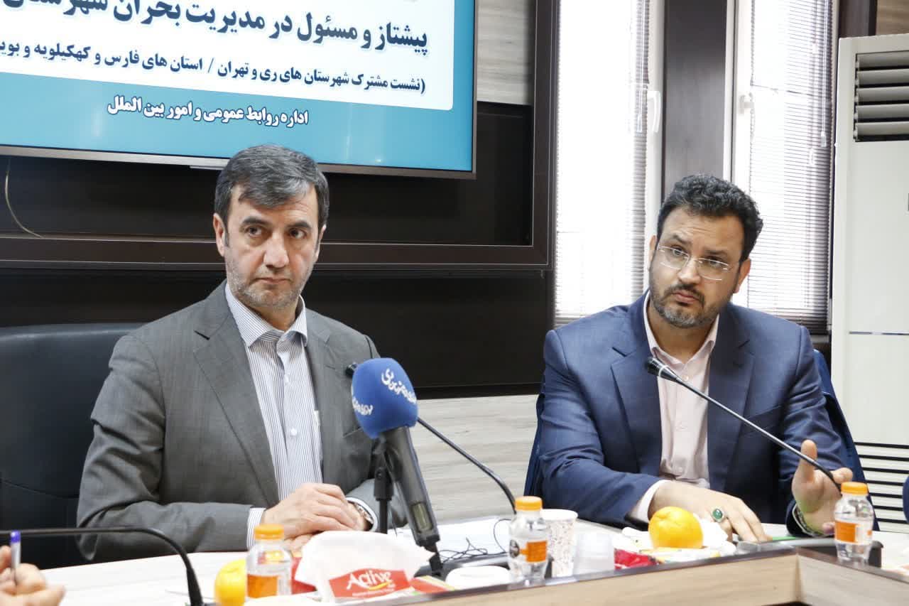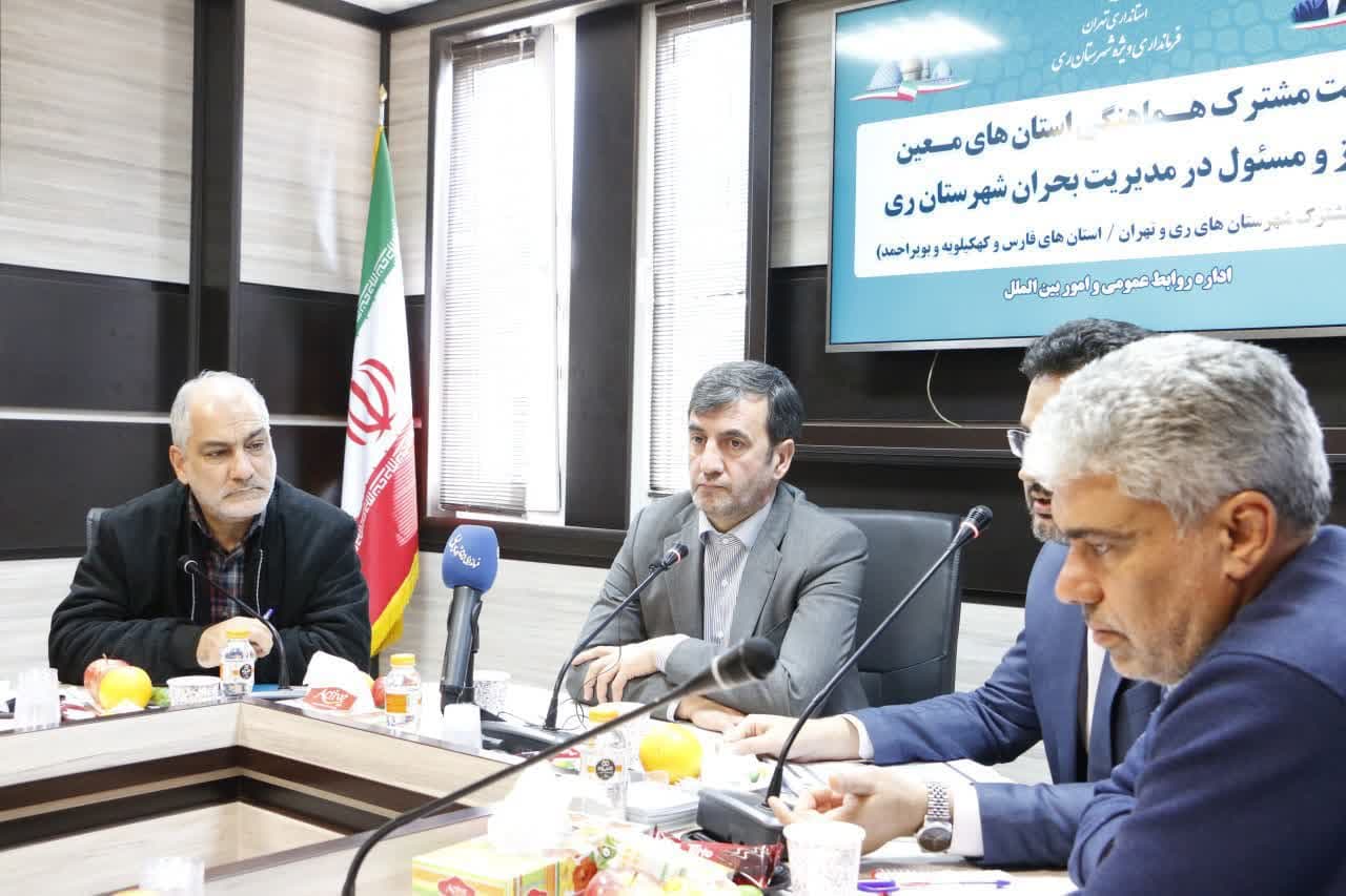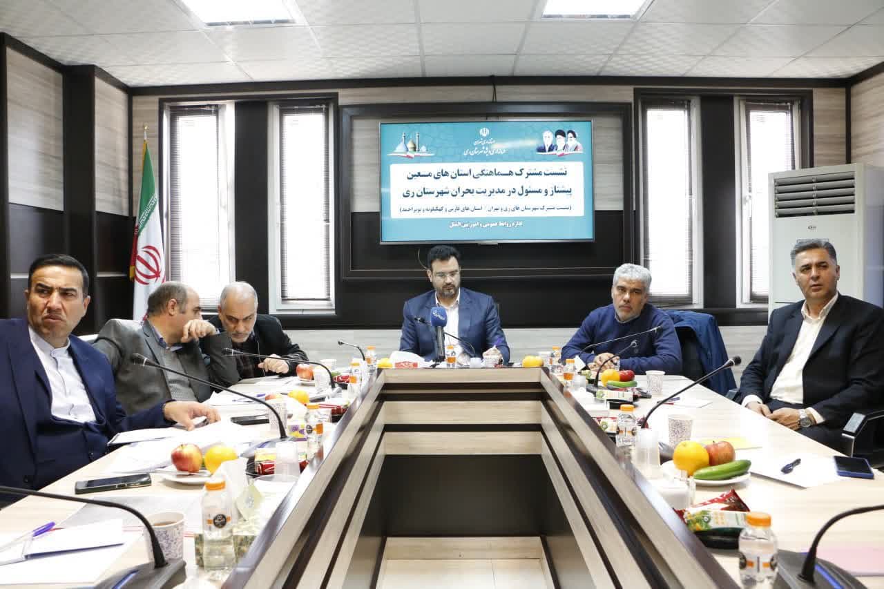 در راستای آمادگی هرچه بیشتر دستگاه های متولی در امر مدیریت بحران و افزایش سطح هماهنگی میان استانی و شهرستانی، نشست مشترک هماهنگی استان های معین، پیشتاز و مسئول در مدیریت بحران به ریاست فرماندار ویژه شهرستان ری برگزار شد.