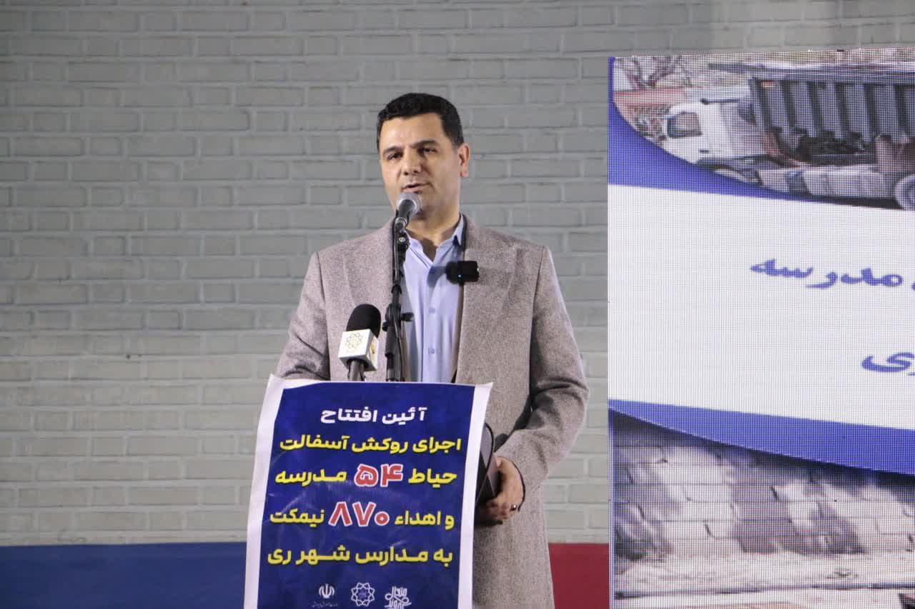 در این مراسم که باحضور نادعلی عضو شورای اسلامی شهر تهران و ری، ایمانی رئیس آموزش و‌ پرورش ناحیه ۲ و یکتا رئیس آموزش و پرورش ناحیه ۱ ری و جمعی از معلمین و فرهنگیان برگزار شد، بصورت نمادین از طرح بهسازی و آسفالت محوطه ۵۴ باب مدرسه و نیز تحویل ۸۷۰ نیمکت کلاس درس بهره‌برداری گردید.