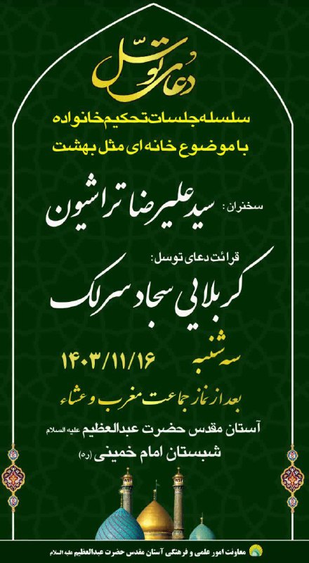 سلسله جلسات تحکیم خانواده با عنوان “خانه ای مثل بهشت” و قرائت دعای توسل