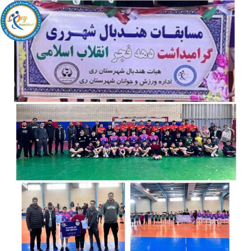 هیأت هندبال شهرستان ری بمناسبت گرامیداشت دهه مبارک فجر ، اقدام به برگزاری مسابقات چهار جانبه بین کانون های آموزشی شهرستان ری نمود .