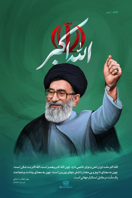 رهبرانقلاب: الله اكبر ملت ايران لحن و نواى خاصى دارد. چون الله اكبر پيغمبر است، الله اكبر بت‌شكن است، چون به معناى ناچيز و بى‌مقدار داشتن بتهاى زور و زر است، چون به معناى رشادت و شجاعت يک ملّت در مقابل استكبار جهانى است.