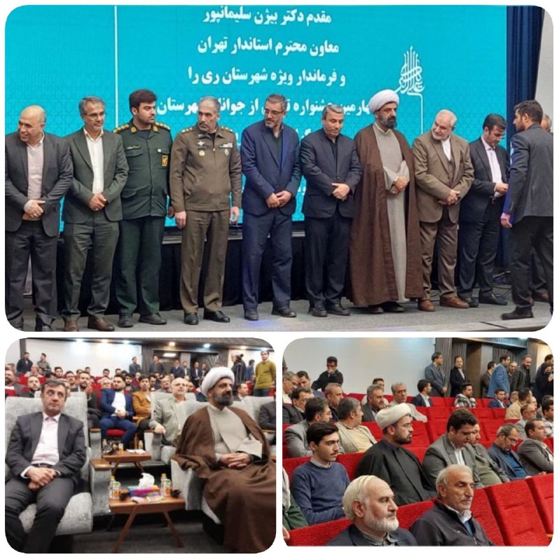 چهارمین جشنواره تجلیل از جوانان شهرستان ری با حضور بیژن سلیمانپور معاون استاندار تهران و فرماندار ویژه شهرستان ری و جمعی از مسئولان در سالن اجتماعات شهرداری کهریزک برگزار گردید.