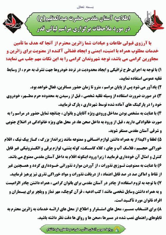 اخبار کوتاه حضرت عبدالعظیم صبح قلعه نو: اسفند 28, 1403 خبرنگار وبگاه صبح قلعه نو 0 دیدگاه #اطلاعیه اطلاعیه آستان مقدس حضرت عبدالعظیم(ع) در مورد ملاحظات برگزاری مراسم لیالی قدر حرم حضرت عبدالعظیم (ع)