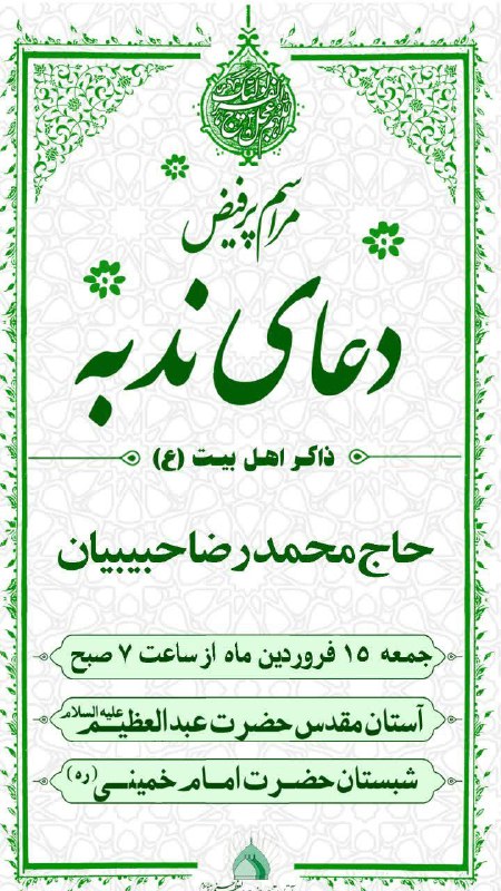 اخبار کوتاه حضرت عبدالعظیم شهری صبح قلعه نو: فروردین 14, 1404 خبرنگار وبگاه صبح قلعه نو 0 دیدگاه #اطلاع_رسانی ویژه برنامه قرائت دعای ندبه با نوای: حاج محمدرضا حبیبیان جمعه ۱۵ فروردین ماه ساعت ۷صبح شبستان امام خمینی(ره) حرم مطهر حرم حضرت عبدالعظیم(ع)