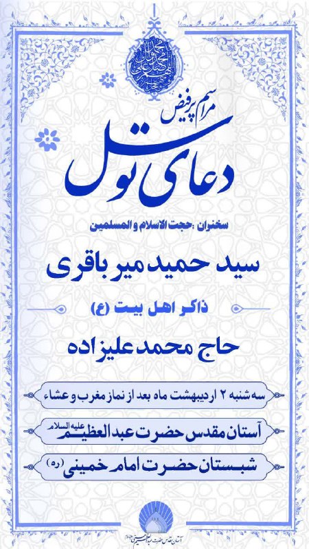 سه شنبه ۲ ارویبهشت ماه بعد از نماز مغرب و عشاء