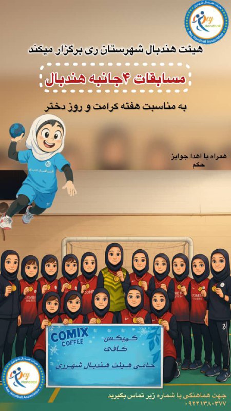 به همت هیات هندبال شهرستان ری و به مناسبت گرامی داشت ولادت حضرت معصومه ( ص) و روز دختر و دهه کرامت ، مسابقات چهارجانبه هندبال در بخش دختران و در رده های سنی نونهالان و نوجوانان برگزار می گردد.