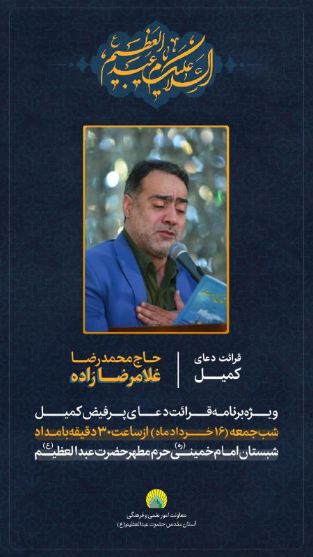 اخبار کوتاه حضرت عبدالعظیم شهری صبح قلعه نو: خرداد 15, 1404 خبرنگار وبگاه صبح قلعه نو 0 دیدگاه #اطلاع_رسانی مراسم قرائت دعای کمیل(نیمه شب) با نوای حاج محمدرضا غلامرضازاده شب جمعه ۱۶ خرداد ماه از ساعت ۳۰ دقیقه بامداد شبستان امام خمینی(ره) آستان مقدس حضرت عبدالعظیم(ع) حرم حضرت عبدالعظیم(ع)