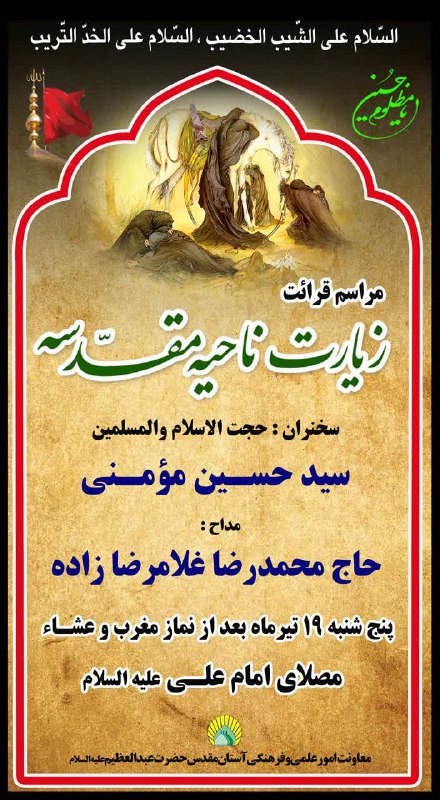 اخبار کوتاه حضرت عبدالعظیم شهری صبح قلعه نو: تیر 17, 1404 خبرنگار وبگاه صبح قلعه نو 0 دیدگاه #اطلاع_رسانی مراسم قرائت زیارت ناحیه مقدسه سخنران: حجت الاسلام و المسلمین سید حسین مومنی قرائت زیارت ناحیه و مرثیه سرایی:حاج محمدرضا غلامرضازاده پنج شنبه ۱۹ تیر، بعد از نماز مغرب و عشاء مصلای امام علی(ع) حرم مطهر حضرت عبدالعظیم حسنی(ع) حرم حضرت عبدالعظیم(ع)