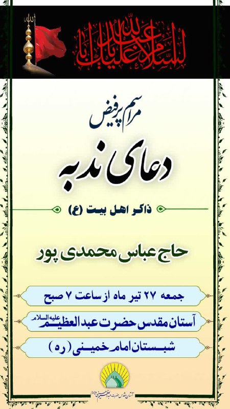 اخبار کوتاه حضرت عبدالعظیم صبح قلعه نو: تیر 26, 1404 خبرنگار وبگاه صبح قلعه نو 0 دیدگاه ویژه برنامه قرائت دعای ندبه با نوای: حاج عباس محمدیپور جمعه ۲۷ تیر ماه ساعت ۷صبح شبستان امام خمینی(ره) حرم مطهر حضرت عبدالعظیم(ع) حرم حضرت عبدالعظیم(ع)