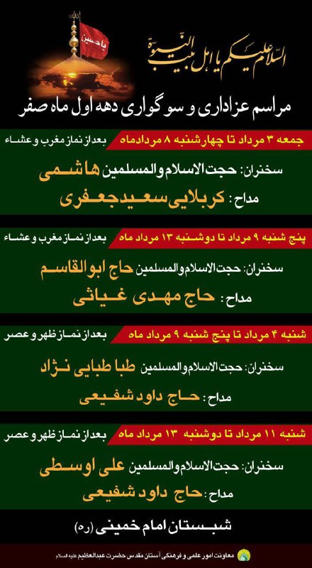 ویژه برنامه عزاداری دهه اول صفر بعد از نماز ظهر و عصر