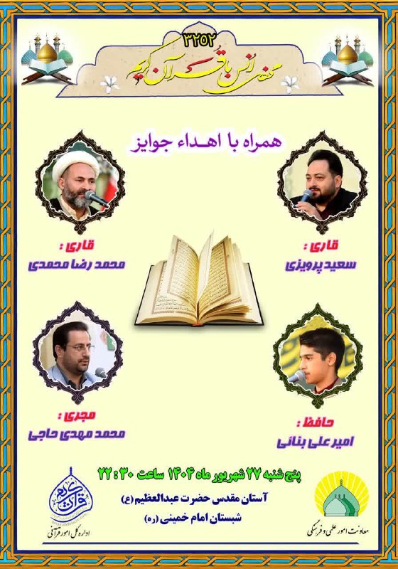 اخبار کوتاه حضرت عبدالعظیم شهری صبح قلعه نو: شهریور 26, 1404 خبرنگار وبگاه صبح قلعه نو 0 دیدگاه #اطلاع_رسانی محفل انس با قرآن کریم پنجشنبه ۲۷ شهریور ساعت ۲۲:۳۰ شبستان امام خمینی(ره) حرم مطهر حضرت عبدالعظیم(ع) حرم حضرت عبدالعظیم(ع)