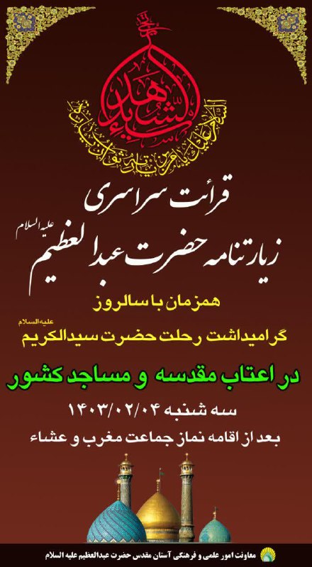 اخبار کوتاه حضرت عبدالعظیم