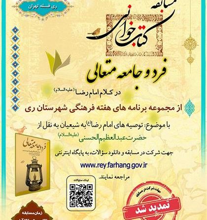بیشتر بخوانیددر پی استقبال از مسابقه بزرگ کتابخوانی «فرد و جامعه متعالی »، رئیس اداره فرهنگ و ارشاد اسلامی ری از تمدید آن خبر داد.